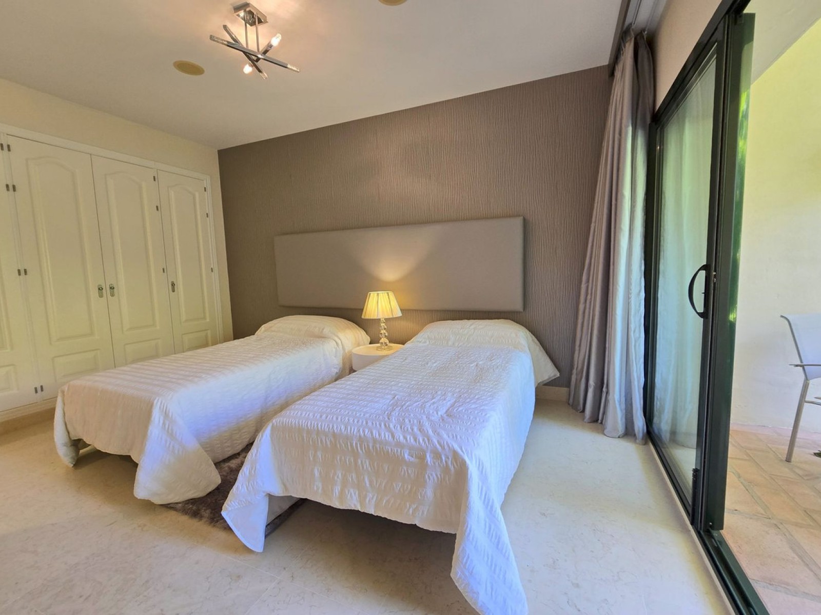 Les deux chambres sont généreusement dimensionnées, avec grands placards, salles de bains attenantes et balcons privés.