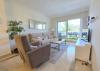 L’appartement comprend un salon lumineux et accueillant, ouvert sur une agréable terrasse ensoleillée avec magnifique vue et une cuisine moderne entièrement équipée.